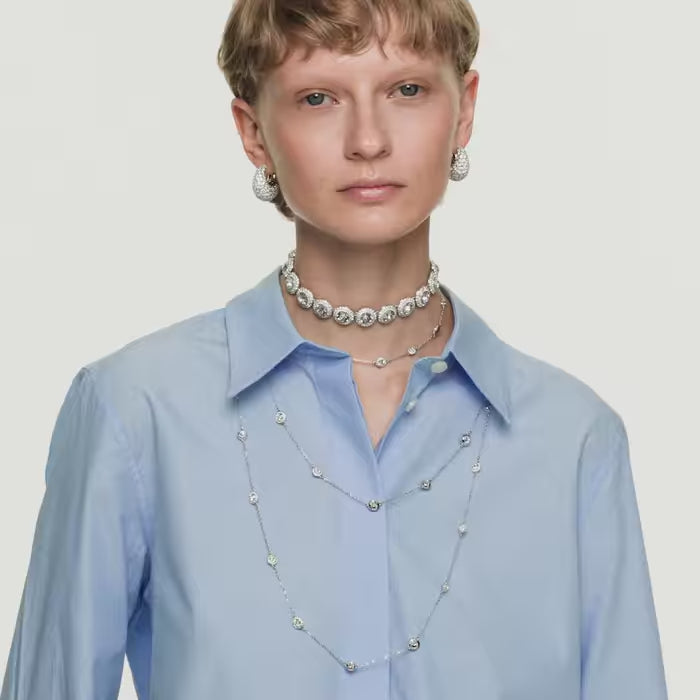 Questo innovativo gioiello può essere indossato come collana o girocollo, offrendoti una scelta versatile per indossarlo ogni giorno. La catena placcata rodio è dotata di un meccanismo scorrevole per una vestibilità facilmente regolabile ed è impreziosita da luccicanti motivi double face. È sufficiente capovolgere la collana per esibire una diversa disposizione di cristalli taglio Round. Abbinala ad altri gioielli Una Angelic per un look dalla radiosità impareggiabile.