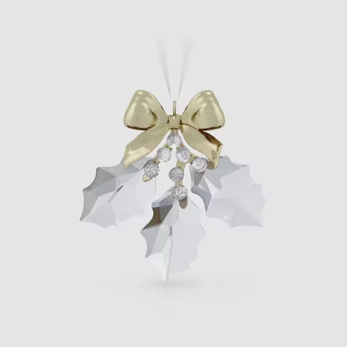 Aggiunta di grande eleganza al tuo arredo per le feste, questa decorazione a foglie d’agrifoglio è una scelta raffinata. Il design è illuminato da 868 sfaccettature e presenta uno straordinario fiocco in metallo in tonalità oro champagne, fissato ad un nastro gros-grain bianco. Sono inoltre inclusi sette cristalli aggiuntivi, che rappresentano le bacche. Aggiungi questa creazione al tuo albero per creare una scintillante scenografia. Oggetto decorativo. Non è un giocattolo. Non adatto ai bambini di età inferiore a 15 anni.