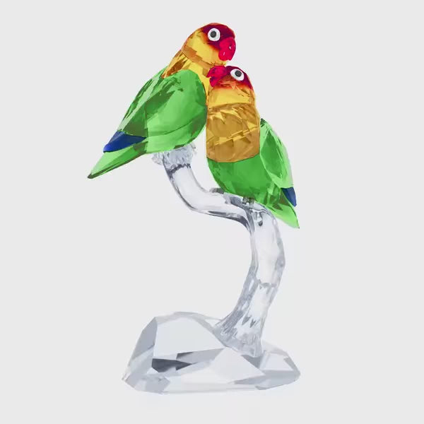 La magnifica creazione Inseparabili aggiungerè un vivace tocco di colore e di romanticismo alla tua casa. La coppia È ritratta nel gesto di scambiarsi effusioni durante il rituale di accoppiamento. Scintillante in nove diversi colori, presenta 1.133 luccicanti sfaccettature. La nuova base a forma di roccia dona ulteriore brillantezza a questo oggetto interamente incentrato sul cristallo intagliato. Autentica rappresentazione della maestria artigianale di Swarovski, È un must per qualsiasi collezionista o amante della natura. Oggetto decorativo. Non È un giocattolo. Non adatto a bambini di etè inferiore ai 15 anni.
